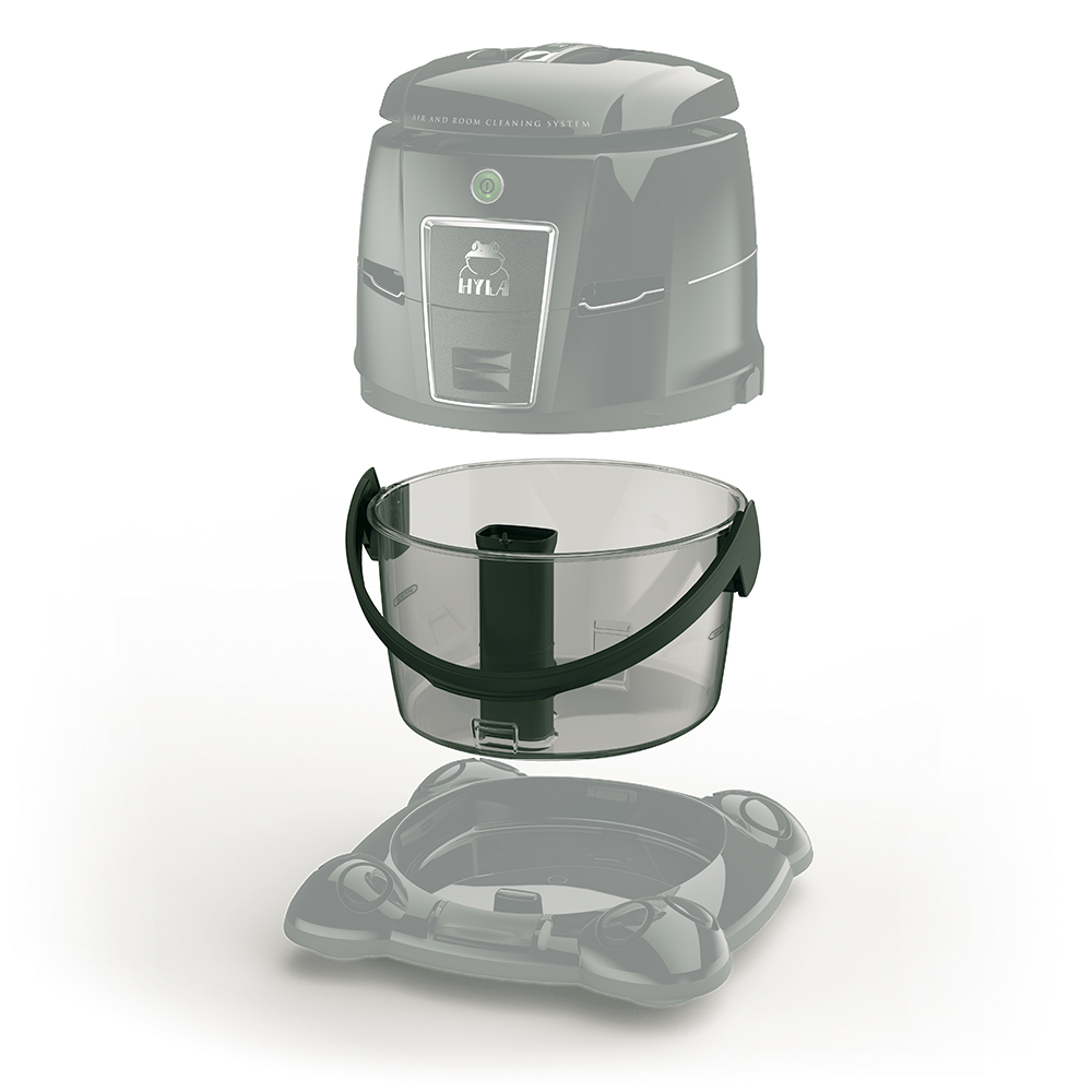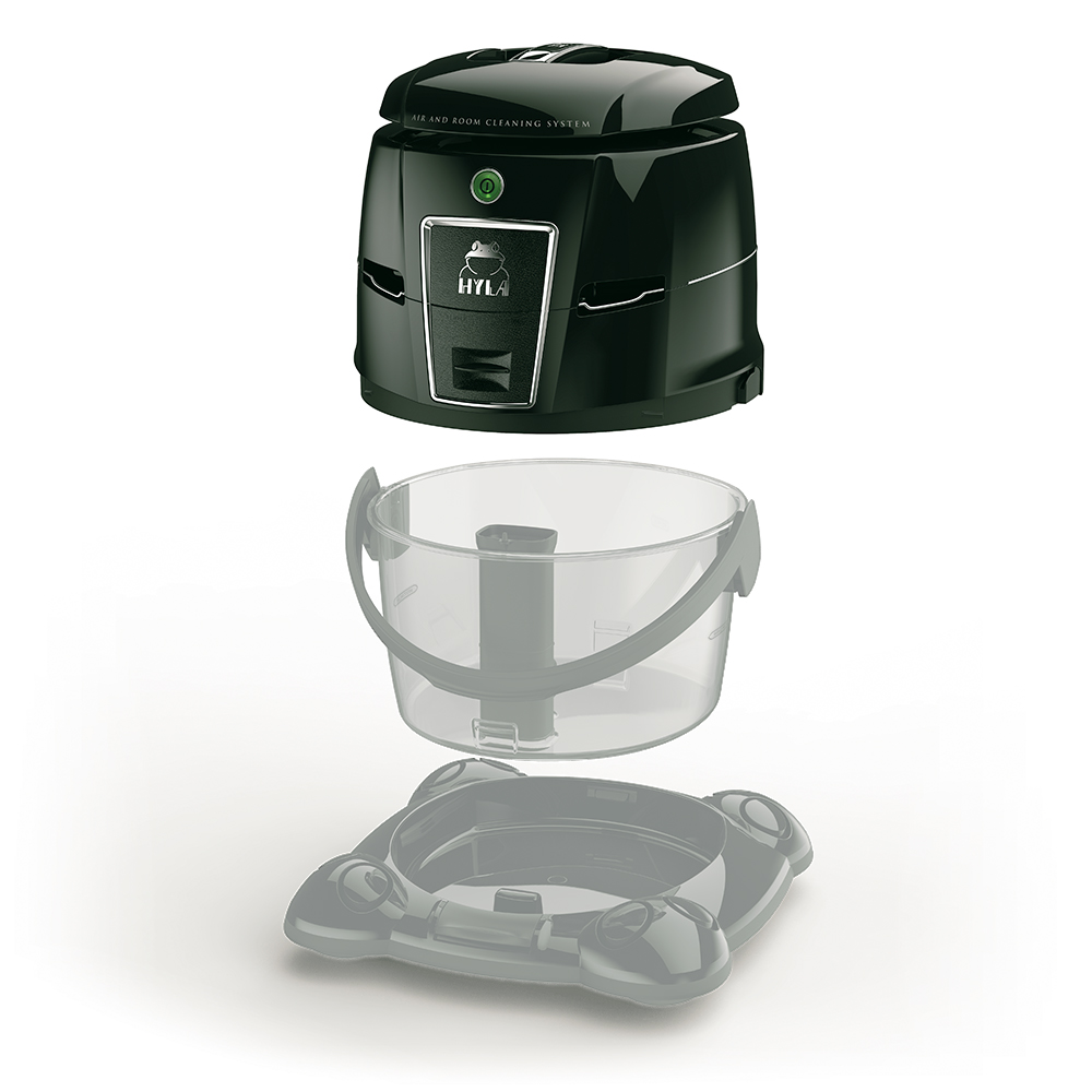 Wasser bindet Schmutz und hält ihn fest. Nasser Staub kann nicht mehr fliegen. Ein HYLA arbeitet ohne Papierfilter. Nichts, was den Luftstrom, der den HYLA passiert, behindern kann.